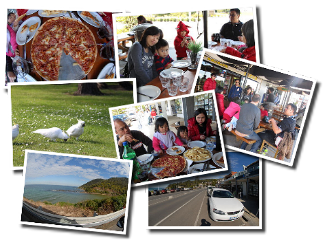 多坐一小時,約11時30分到達第一個鎮 LORNE。晚上預算BBQ, 所以先要去個超市買食物,再到鎮上食個LUNCH, 午餐係路邊一間叫Andrew's 的PLZZA店。 |