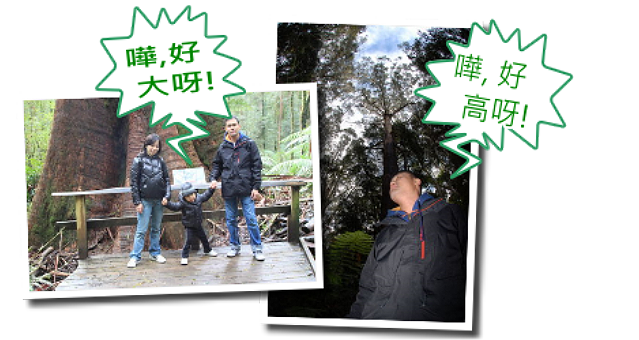 用過午餐後,買飛入場開始行,澳洲森林多大樹,又高又大, 這裡亦有樹上吊索可以玩,可惜無人夠膽量,HAHA! |