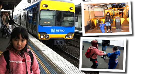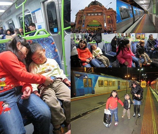 約了阿TSOT同小肥羊6:30分在Glen Waverley火車站接我們, 再去當地唐餐館食番餐中菜。上到火車,小朋友都倦了! |