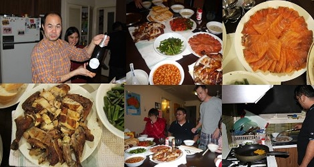今晚又在阿TSOT家玩煮飯仔,食番餐有飯的晚餐,大洋路遊正式結束。 晚餐有三文魚,有茄汁焗豆,有法國麵包,有燒雞,有豆有菜有紅酒,正! |