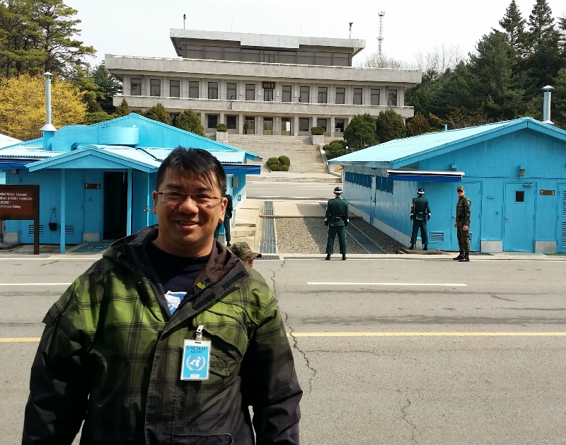 我們一早要到當地指定旅行社報到, 跟住上車去板門店, 途中很多限制,像真的一樣, 去到板門店, 規定不準亂影相, 連回頭望有些地方都限制, HAHA, 去到板門店, D軍人像紙版公仔, 一動也不動, 勁! 進入房間前, 可以不時看到北韓那面有軍人站出來, 進入房後,就可以腳踏北韓境內, 亦可以同D軍人影相! |