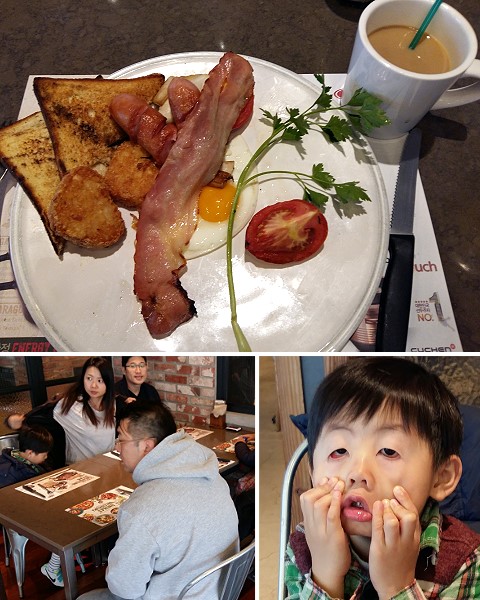 早上先來個早餐, 韓國人與我們口味完全不同, 找個早餐都不容易 G DRAGON總玩整鬼臉, 呵呵! |