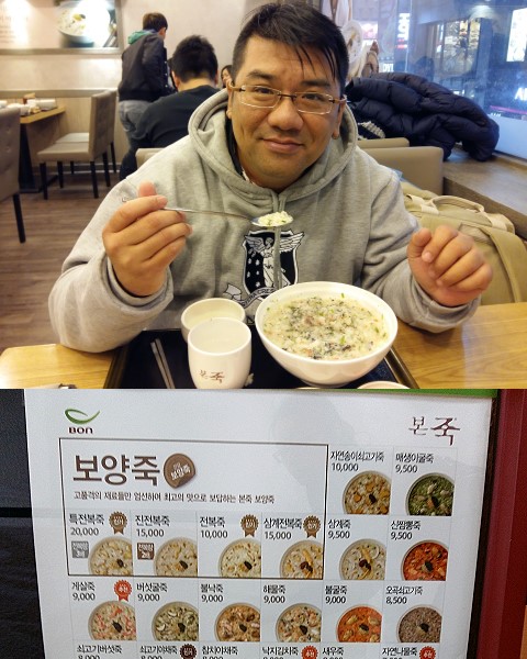 結果是....決定回明洞, 試一間天天都會經過的鮑魚粥店, 鮑魚粥分3級, 少少, 中間同好多, 我叫了好多, 原來好多即係...無乜, 呵呵, D粥又難食, 中大招! |
