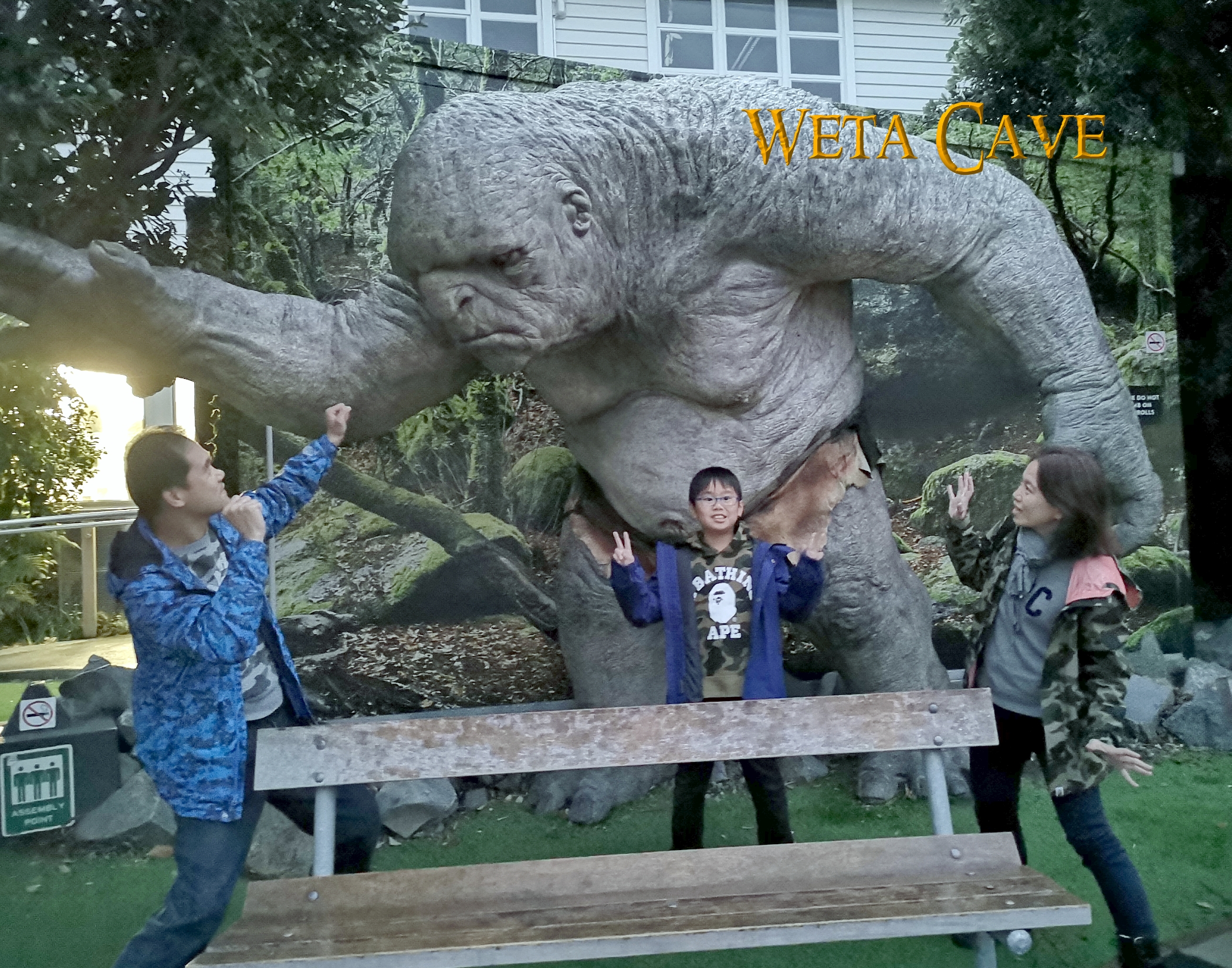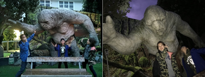 到達酒店已經近晚, 先放下行李再與小文往機場還車, 酒店離機場約10分鐘步行, 酒店老闆好好相遇, 早上更會送我們往機場, 房間也是可以, 放好行李後, 先出發往 WETA CAVE SHOP, 由於已經關門, 只能在門口與怪獸影影相, 都叫達到目的, |