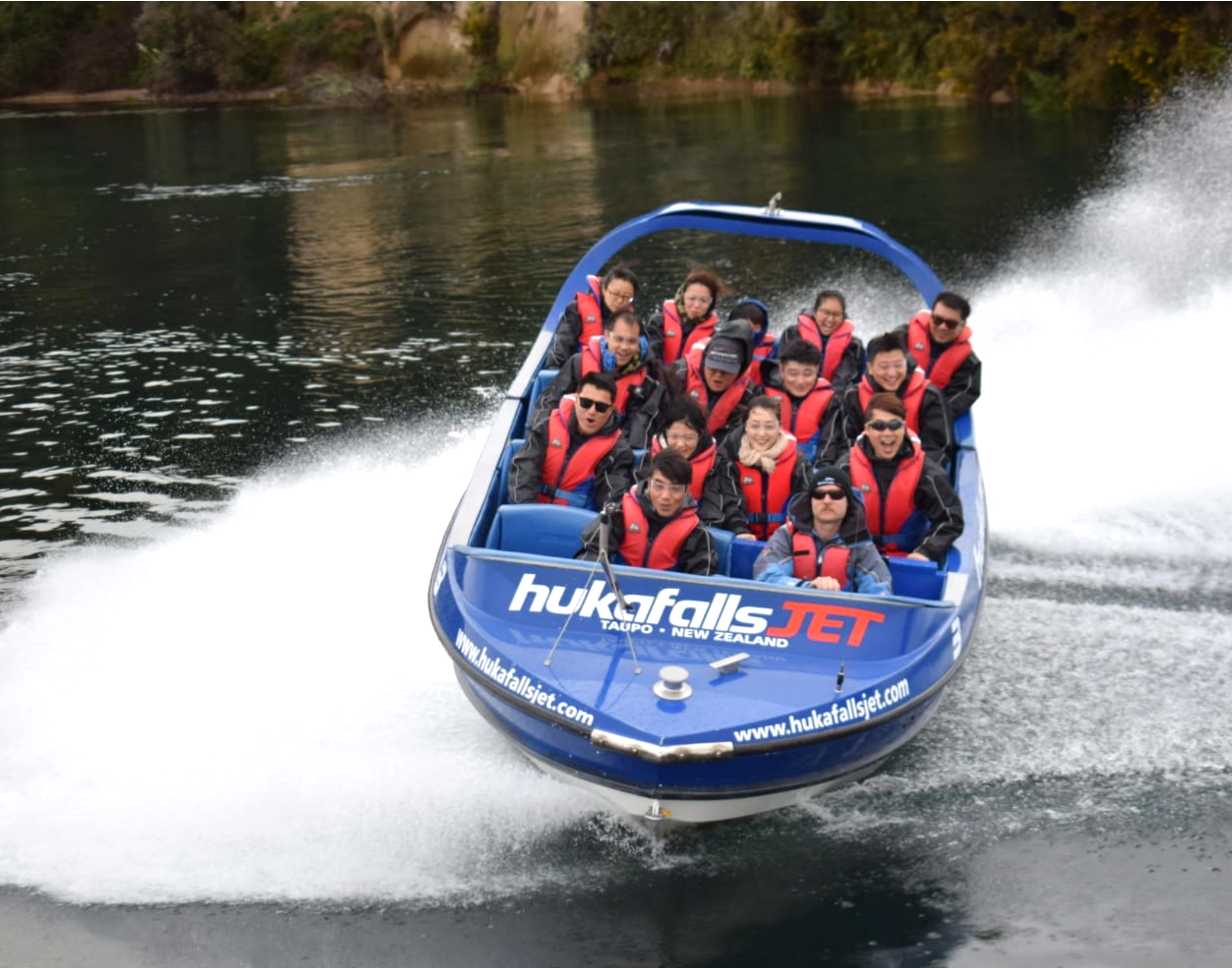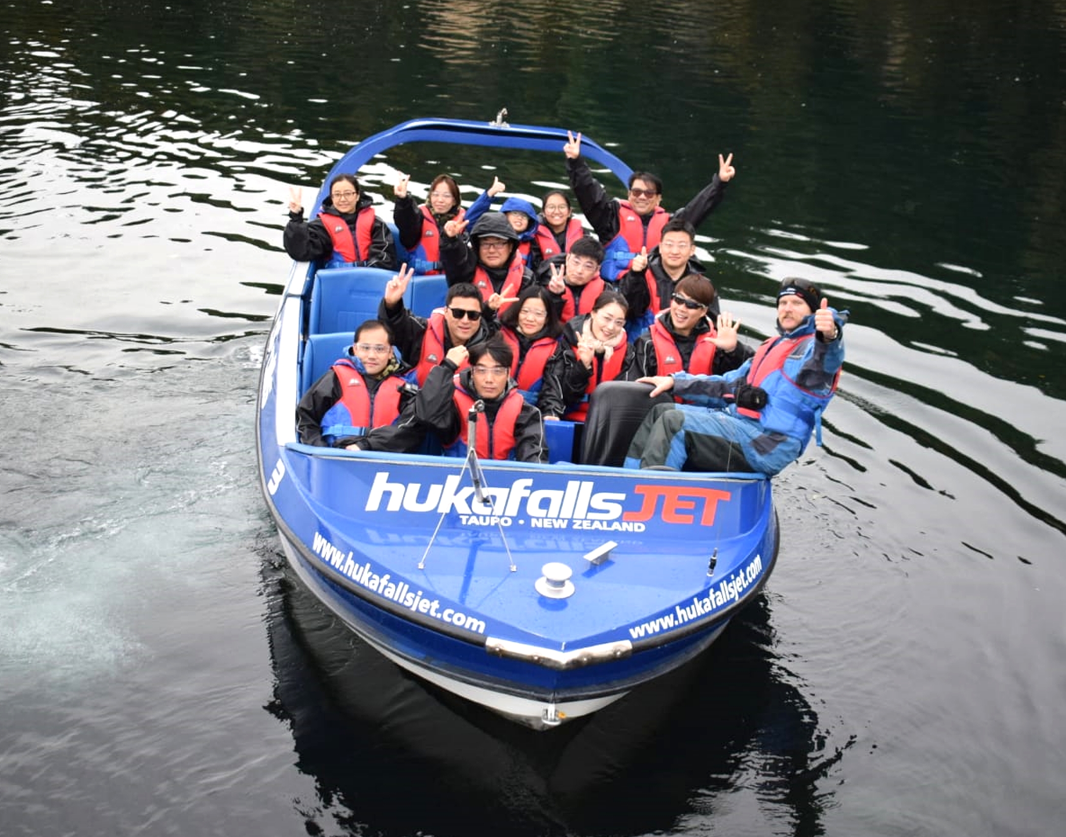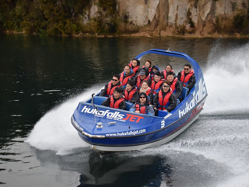3:30PM去到HUKA FAIL JET, 剛好有位, 可以提早玩快艇, 這個以360為標題的快艇, 很剌激, 時間亦長, 沒有欺場, 駕駛人技術高超, 在河上不斷飛插及打轉, 先往反瀑布方向玩一輪後, 再直衝瀑布, 好玩, 抵玩! |