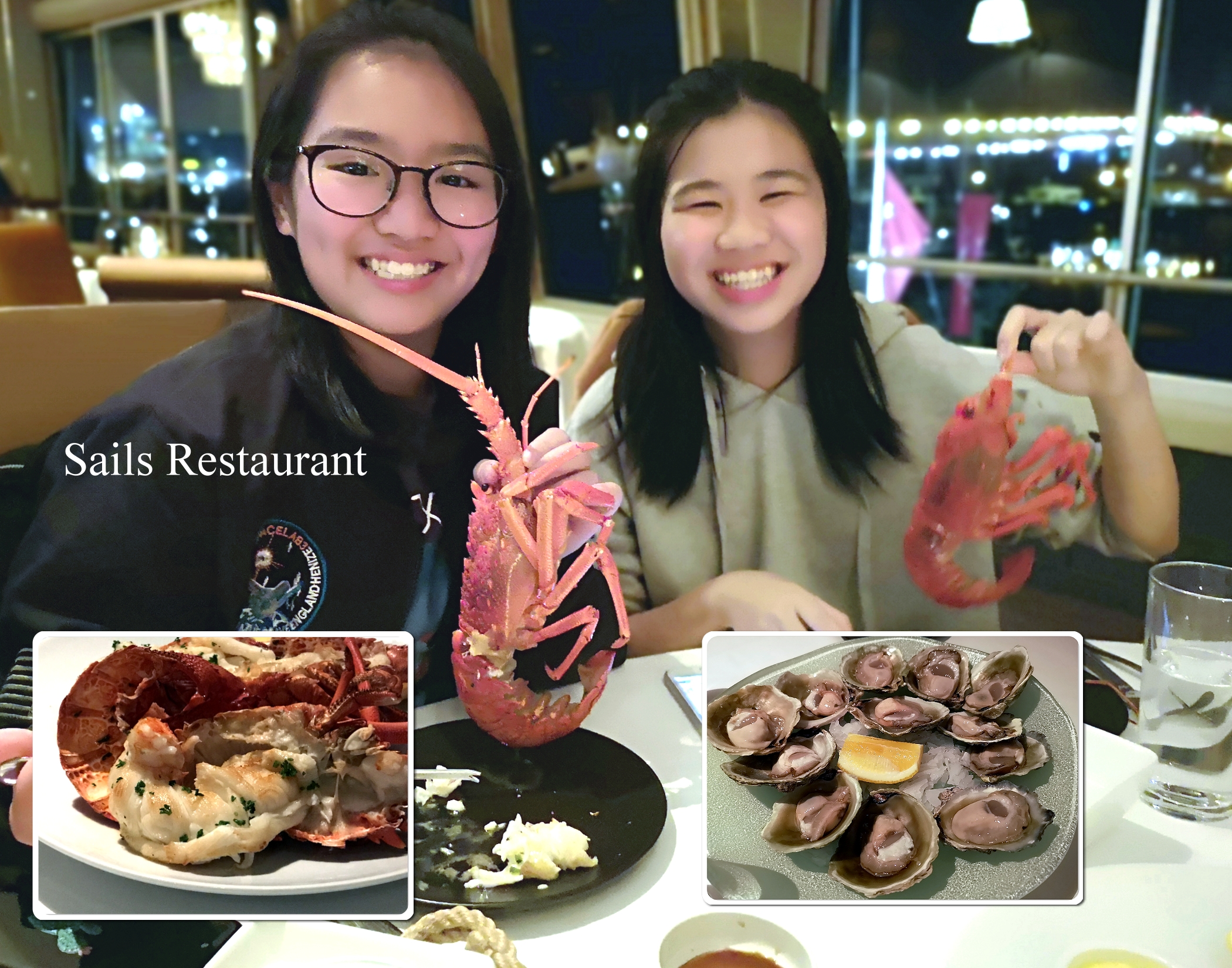 晚飯原訂了酒店附近的一間餐廳, 唯因已取車比較方便, 因此, 改訂了另一間在AUCKLAND其中一間最好的餐廳, SAILS RESTAURANT, 離市區不遠, 地處偏僻, 遠看根本不會知是餐廳; 餐廳在2樓, 上到去就看到原來是高級野, HAHA! |
