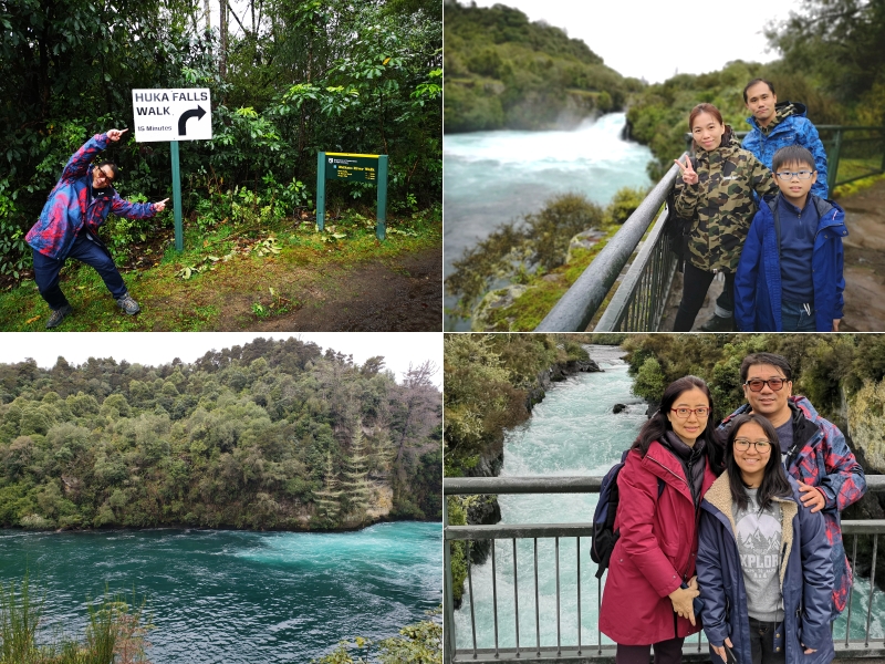 下一站就是往HUKA FALL, 我們報名參加了HUKA FALL JET, 到步後, 先往行行HUKA FALL, HUKA FALL 有不同地方可以看, 我們先到了一個HUKA FALLS WALK, 行約15分鐘就到瀑布口, 小文放航拍機; 我就再向上行, 去到另一個點, 有一個很大的停車場, 就是站在瀑布口上, 可以看到瀑布後的景色, 急召大家到來後, 我就跑回去取車, 再 在停車場集合 |