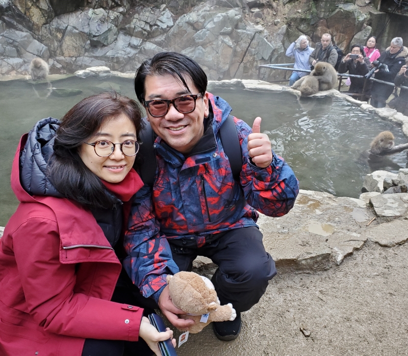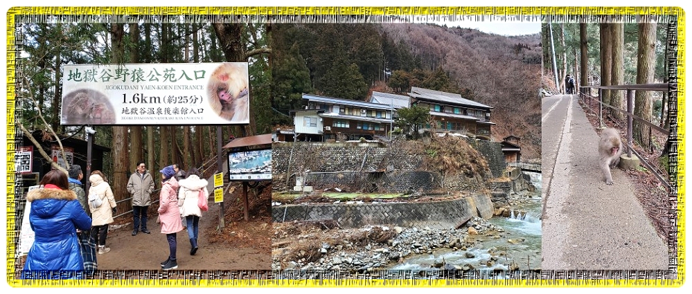 午餐後, 就出發往今次的重點之一, 出發往地獄谷野猿公苑, 到達停車場後, 步行15分鐘, 才去到起步點, 由於有雪,山路都是泥漿, 部份人放棄入山, 行20-30分鐘, 才正式到達入口, 入口前經一個小村莊, 已可以見到猴子四處走! |