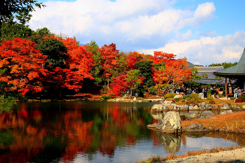 | 嵐山上到處都是賞楓的好去處, 天龍寺也是其一, 1354年創立的天龍寺內是供奉釋迦如來, 夏天的紫陽花也很有看頭, 11月中旬~12月上旬 |