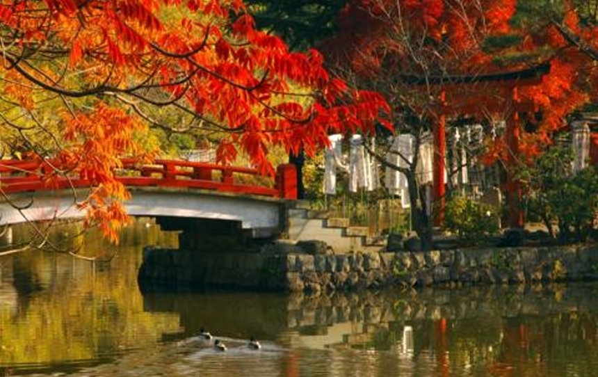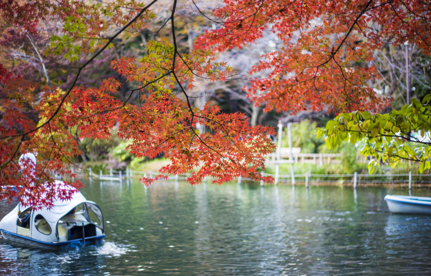 | 京都內另一個賞楓好景點池邊有將近1.8公里長的楓樹遍布 , 交通:JR中央本線吉祥寺駅東11月中旬〜12月中旬 |
